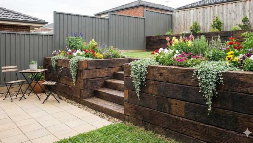 The terraced walls turned a steep hill into multiple usable levels. Now we have planting beds, a sitting area, and a yard that finally feels finished.
